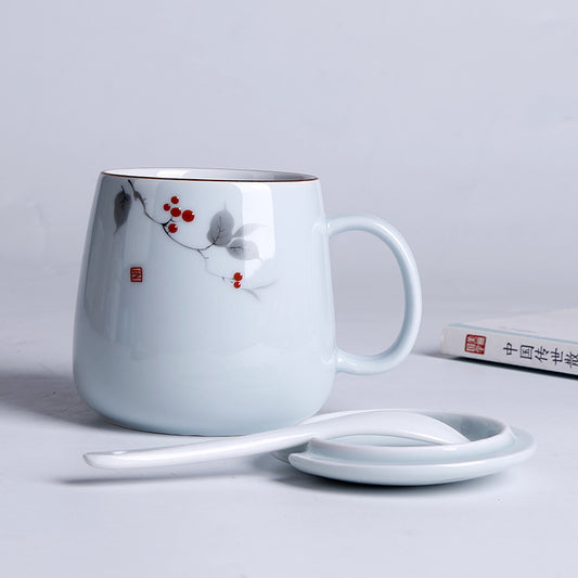 Household Ceramic Spoon Mug With Lid